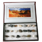 Contains: quartz, magnetite, muscovite, calcium, dolomite, orthoclase, bauxite, stibnite, kaolinite, anhydrite, sandstone, shale, travertine, clastic rock, basalt, granite, gabbro, crystalline slate, flaggy slate, marble.