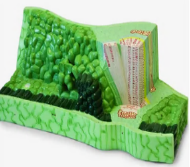 Size: length not less than 50 cm, diameter about 20 cm. The model represents a greatly enlarged twist of the deoxyribonucleic acid spiral. Made of plastic. Mounted on a stand. The model is detachable. The following symbols are used on the model: phosphate residue – P, red color; white pentagon – deoxyribose – D; colored polygons – nitrogenous bases adenine (A), thymine (T), guanine (G), cytosine (C); The shapes used are conventional.