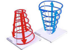 The educational model "Cyclone and Anticyclone" is designed for visual study of atmospheric phenomena related to air mass movements and the formation of weather systems. Dimensions: 230 x 230 x 50 mm.
