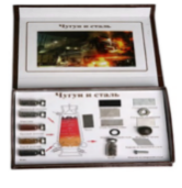 The "Hardness Scale" collection is intended for use as handout material in chemistry and geography courses. The collection includes the following samples: talc, gypsum, calcite, fluorite, apatite, feldspar, quartz, topaz, corundum.