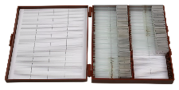 Contents: Simple epithelium, Hyaline cartilage, Human blood, Nerve cells, Bone tissue, Smooth muscle tissue, Striated skeletal muscle tissue, Striated cardiac muscle tissue, Human sperm cell, Human egg cell. Set includes: 10 prepared microscope slides, 1 storage box for slides, 1 specification sheet (passport).