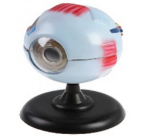 The model is approximately 15 cm in height. Made of plastic and mounted on a plastic stand. The model is painted and detachable, representing the human eye and illustrating the structure of the visual analyzer.