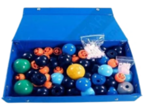 With the parts of this set, you can model molecules of methane and other saturated hydrocarbons, dichloroethane, dichloroethylene, ethylene and its chlorinated derivatives, benzene, toluene, phenol, ethyl alcohol, acetone, acetic and aminoacetic acids, acetaldehyde, aniline, nitrobenzene, hydrogen sulfide, water, carbon dioxide, as well as many other organic and inorganic substances. The set contains balls and connecting rods for building molecules.