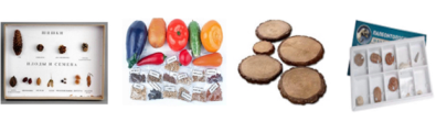 The set consists of: 1. Collection "Gymnosperms." The collection includes 5 species of gymnosperm plants (spruce, cypress, larch, pine, juniper). 2. Collection "Wood Species." The collection includes 10 samples of wood species (cross-sections and wood specimens). 3. Collection "Fruits of Agricultural Plants." The collection includes 8 models of fruits and root vegetables of main agricultural crops (eggplant, red pepper, tomato, radish, potato, turnip, carrot, cucumber) and seeds of cereals (wheat, oats, millet, buckwheat, barley), legumes (pea, lentil, soybean, bean), essential oil plants (sunflower, coriander, flax), and vegetable crops (beetroot). 4. Collection "Paleontological." Paleontological sample list - 1 pc. Natural paleontological specimens: Bryozoan fragment (Silurian-Permian); Brachiopod shell (Silurian-Permian); Plates and spines of sea urchin (Carboniferous-Permian); Nummulite shell (Cretaceous-Eocene); Organogenic limestone (Carboniferous-Permian); Colonial coral Heteretes (Carboniferous); Fusulinid limestone (Carboniferous-Permian); Dense shell limestone.