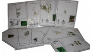 Sheets in A4 format (width 21 cm, length 29.7 cm). Dicotyledonous plants: herbaceous - 1 pc, shrub - 1 pc, woody - 1 pc. Monocotyledonous plants: grasses - 1 pc, lilies - 1 pc. Fern - 1 pc. Horsetail - 1 pc. Clubmoss - 1 pc. Moss - 1 pc. Algae: green - 1 pc, red - 1 pc, brown - 1 pc. Lichen: crustose - 1 pc, foliose - 1 pc, fruticose - 1 pc.